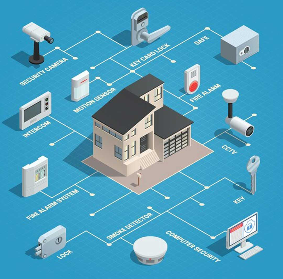 Our intelligent setup includes Wi-Fi-enabled cameras, motion sensors, and smart smoke alarms—all integrated for real-time monitoring. Receive live video feeds, email alerts, and text notifications from anywhere, ensuring complete control over your home’s safety.